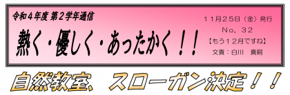 自然教室へ向けての動きが始まっています。ここから、2年生の熱く、あったかい想い...
