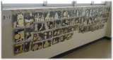 美術室に向かう廊下に、3年生の美術科で取り組んだ切り絵の作品が展示されています...