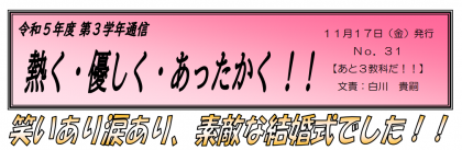 【11月17日、22日発行】3年生学年通信 第31号&第32号