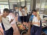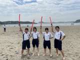 7組は海でレクを行っています。ビーチフラッグ、ビーチバレーと楽しそうです!