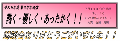 今週は個別懇談会でした。暑い中でしたが、保護者の皆さま、足を運んでいただきあり...