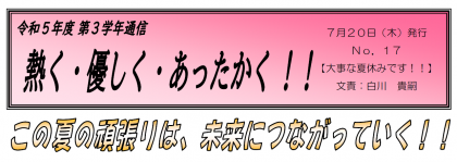 さすが、3年生! そう思わせる力強い返事の声が、今朝の校長室を包みました。 ...