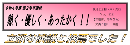 【9月22日発行】2年生学年通信 第22号