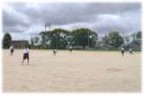 ソフトボール練習を元気よく行っています。授業の後半は、練習を生かしてゲーム形式...