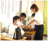土曜日の豊南交流館で、幼児たちの元気な姿を地域の方たちと一緒に支える豊南中生の...