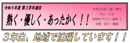 【9月29日発行】3年生学年通信 第23号