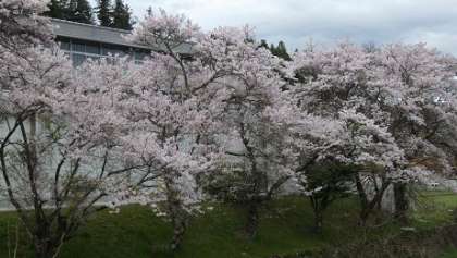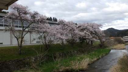 明日は、着任式、入学式の準備で稲中生の登校日です。明月橋から体育館側にカメラを向けると、見事に咲いた桜の花が皆さんの元気な顔を今か今かと待ち遠しいようで春風に揺れています。