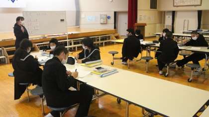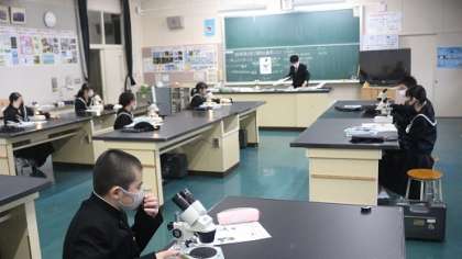 本日は土曜学校開放日で、地域の方が多数来校されました。2時間目は、どの学年も道徳の授業を行い、3時間目は、1年生の理科で、双眼実態顕微鏡を使って植物を観察しました。2年生の音楽科で、ホルストの惑星を鑑賞し曲名を想像しました。3年生の総合の授業で、高校入試に関するクイズを通して自分の進路について考えました。今後も毎月学校開放を行い、生徒の学びの様子を伝えていきますので、多くの皆さんのご来校をお待ちしております。