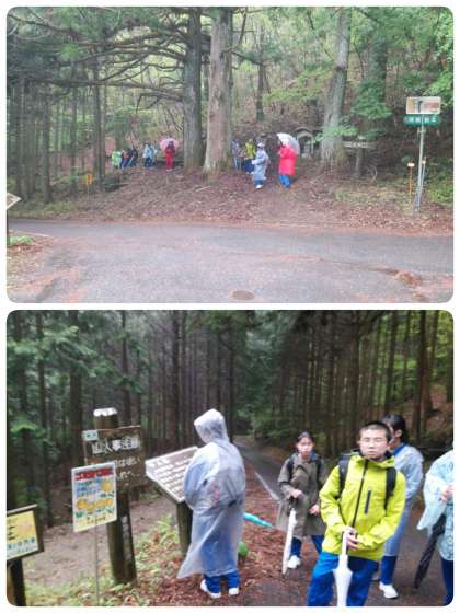 山の頂上にある猿ヶ城跡を見学し、山を降りた弘法杉まで来ました。あと、1時間ほどで、旭高原に到着です。ちょっと疲れてきました。