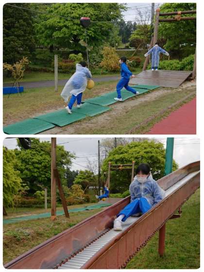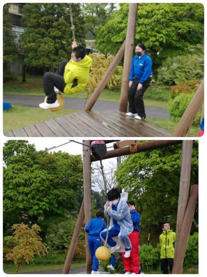 お弁当の後は、ちょっとの時間も惜しんで、アスレチックで大騒ぎです。