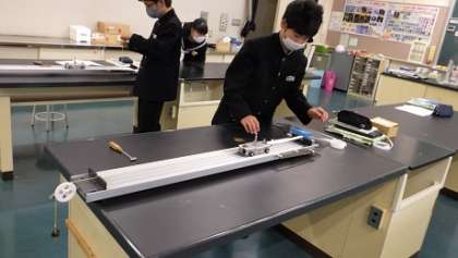 前日に、タブレット(iPad)の持ち帰り訓練を全校で行いました。生徒は、既にタブレットを使った授業等を行い、タブレットに慣れています。持ち帰り訓練では、学校で出された課題に自宅で取り組み、本日、学校で提出しました。ご協力ありがとうございました。3年理科では、運動方向に力を受け続ける物体の運動を調べました。