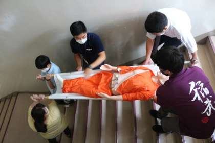 前期中間テスト1日目でした。午前中に3時間、集中して問題に向かい合いました。午後は、職員で救急救命講習会を行いました。消防署の方から熱中症への対処方法を学んだり、担架を使った傷病者の移動の仕方の実践練習を行ったりしました。