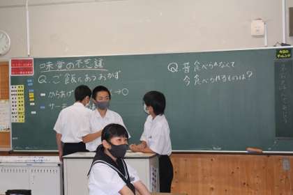 朝の活動で、全校スピーチを行いました。今回発表した3人のテーマは、「味覚の不思議」「国旗」「将来やってみたいこと」についてでした。発表者は、テーマについての自分の考えをわかりやすく述べました。また、聞いている生徒たちが考えるような質問を投げかけ、最後にまとめをしました。
