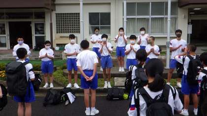 明日の大会に向けて、下校の際、1・2年生から3年生にエールが送られました。みんな、ベストを尽くしてがんばろう!