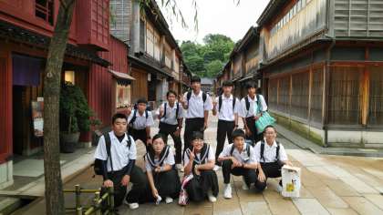 ひがし茶屋街で記念撮影です。
