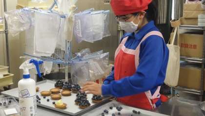 「ブルーベリーのこみち」では、お店の方のタルトをお手本にブルーベリータルトを作りました。「壽生会」では、利用者の方が気持ちよく過ごすことができるように頑張りました。また、今回は写真が撮れませんでしたが、「高崎モータース」では、社長さんと色々な場所で活動し、車検の様子を見学させていただきました。
