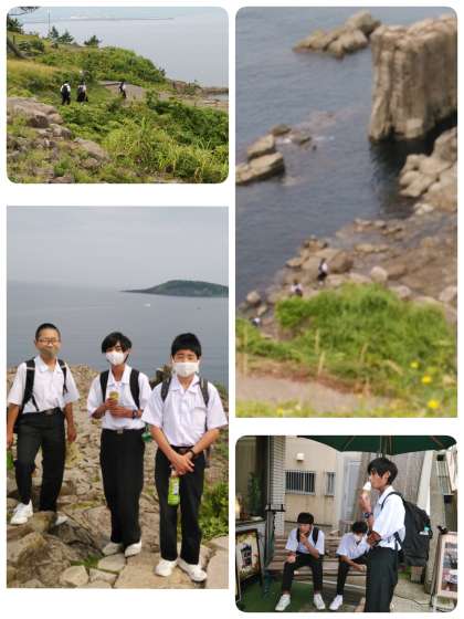東尋坊にて さわやかな海風よりもソフトクリーム! 崖を下り、海辺まで行った子たちも…