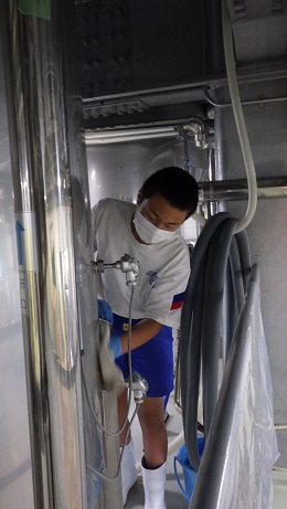 蔵の掃除の様子です。素晴らしい働きぶりで、ここで働いてほしいと言われるほどでした。また、初日は、学校の庭園の刈り込みもしてくれました。