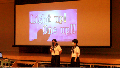 稲光祭の結団式を行いました。スローガン「Light up! One up!!」に選ばれた二人が思いを語り、その後、それぞれの団に分かれて活動しました。今年度の稲光祭は10月16日(土)です。コロナ対策のために、例年とは違った出し物を行います。