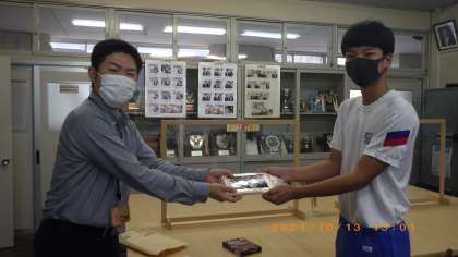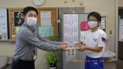 去る8月5日(木)、山村の価値・魅力について山間部5校の中学生、足助高校生、東京の大学生が地域や立場をこえて一緒に対話する試みがに行われ、本校からも3年生2名が参加しました。本日は豊田市役所企画課の担当者がそのお礼に来校されました。