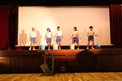 有志発表では、1番目「ただのヲタク。」が、自分たちが好きな3曲を踊りました。2番目「ステップ5」は、ドリフの髭ダンスをリメイクしてバケツ回しをしました。3番目「ピュレミド」は、ブルーバードを独唱しました。