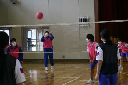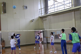 5・6時間目に生徒会主催の全校レクで、ソフトバレー大会を行いました。7チームに分かれて総当たり戦で戦いました。優勝を目指すだけでなく、学年を越えて絆を深めることを目的とし、各チームが声を掛け合い、楽しくソフトバレーを楽しみました。