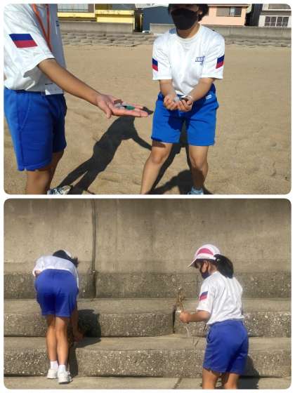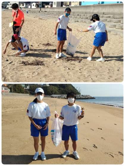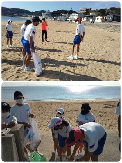 今日の最初の活動は、生徒企画による浜のゴミ拾い活動です。感謝の気持ちを込めて、ゴミ拾いをしました。