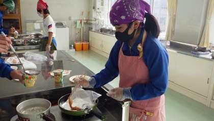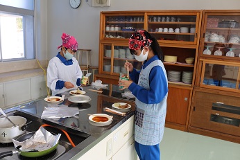 2年生は家庭科で調理実習をしました。ポテトサラダと豚肉の生姜焼きをつくりました。豚肉の下にアルミホイルを敷いて焦げないようにして炒めました。どちらもいい匂いがしました。