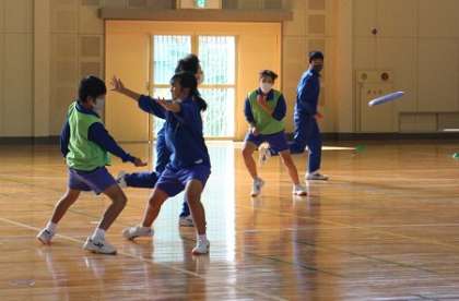 1・2年生の体育は合同でアルティメットを行いました。ディスクを投げたり、取ったりするだけでなく、作戦を立ててチームで協力していい試合ができました。