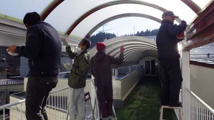 今日は、地域ボランティアの方が2階渡り廊下のペンキ塗りをしてくださりました。感謝です。