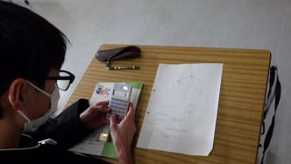 3年生の数学は、三平方の定理を学習しています。今日は、(理論上)富士山の山頂から見渡すとどこまで見ることができるかを考える活動をしました。定理を覚えるだけでなく、理由を考え証明することで、考え方も学んでいます。