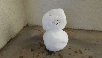 校舎の片隅にひっそりと、雪だるまが鎮座しておりました。