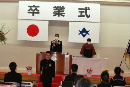 晴天の下、令和3年度稲武中学校卒業式が行われました。1・2先生や3年生保護者、職員が見守る中、3年生10名、堂々と胸を張って式に臨みました。3年生の晴れの門出を無事見送ることができました。3年生の新しい出発を全員が応援しています。