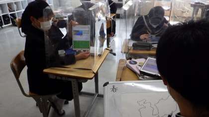 2年生の理科は、グループに分かれて、日本の四季の天気の特徴を調べました。特徴的な天気図を見つけて勢力が強くなる気団を書き込んだり、天気が変化する理由を調べたりしました。