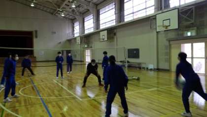 1年生の体育は、自分たちで企画してソフトバレーボールの試合をしました。声を掛け合い、ハッスルプレーで楽しみました。