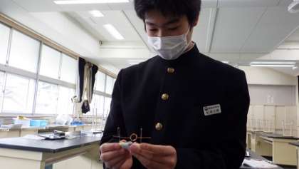 2年生の理科は、以前学習したモーターの原理を利用したクリップモーターを作って動かしました。制作に苦労した分、回った時は感動がありました。