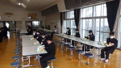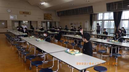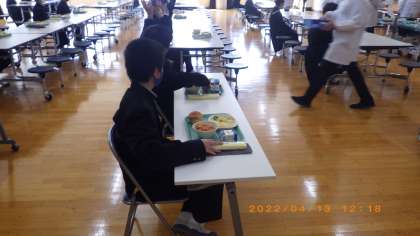 本日はパンの日です。美味しくいただいていますが、黙食を続けています。世の中が早くコロナから解放されて楽しい会食ができますようにみんな願っています。増やしたい人自分で取りに行けないので手を挙げると先生が運んでくれます。