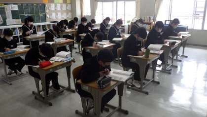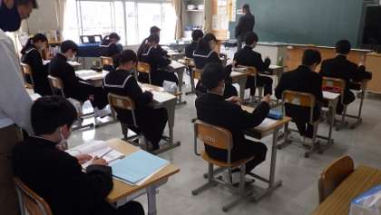 1年生数学では、単元「正の数・負の数で量を表す」に入っています。真剣に授業に臨む表情がとても印象的でした。