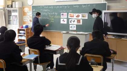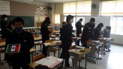3年生英語では毎週火曜日にALTが授業に来てくれます。本時は初めての授業。テンガロンハットを被った新ALTに自分たちのことを紹介しました。