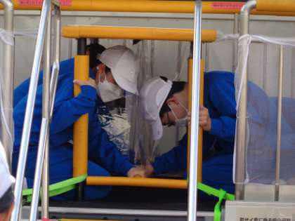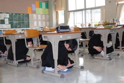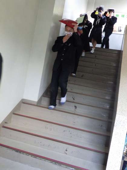事前に各学級で避難経路や避難方法について確認し、地震発生・火災発生の合図で避難場所へ整然と移動することができました。頭を守り、さらにハンカチ等を使って煙を吸い込まないように行動することができています。その後、新しくなった起震車を使って規模の大きい地震の揺れを体験しました。自分や他者の命を守るため、どんな時でも適切な行動がとれるように訓練で身に付けていきましょう。