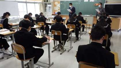 1年英語はALTといっしょにクイズ形式で友達と英語でやりとりしていきました。Do you have a mobile phone? Can you sing a school song? What anime do you like?