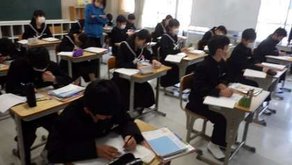 1年英語はUnit1に入りました。本時の学習課題は「英語で自己紹介できるかな」でした。be動詞、一般動詞を学びます。1年生みんな大変きれいなアルファベットが書けます。小学校で一生懸命に学んできた証です。