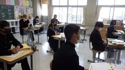 3年国語は教材「握手」の学習に入りました。本時は単元課題「ルロイ修道士の考え方や生き方についてあなたが思うことを書きなさい」の提示があり、どんな学習を展開していくのか見通しをもつました。