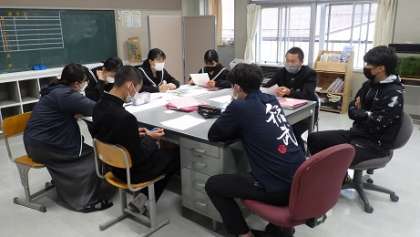 四つの委員会に分かれて活動しています。執行部は19日に開催される生徒総会に向けての準備、保健給食委員会は「体力づくり」について、生活委員会は「身だしなみ」について、美化・図書委員会は二つの異なる活動の年間計画を立てました。
