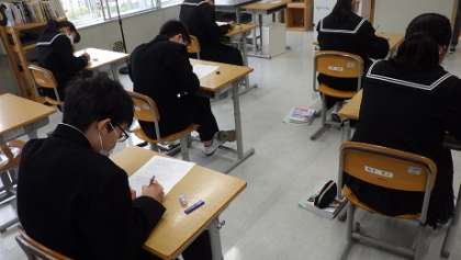 2年理科は、月例テストです。真剣な表情がとても印象的です。