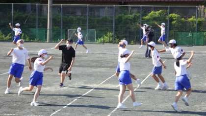 稲武音頭とともに体育祭の定番となっている通称「夢まち」。しかし、誰も正確に踊ることができず、困っていたところ、卒業生と保護者の方が急遽講師として来てくださいました。心から感謝します。やっぱり、今日もいいことがありました。