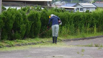 体育祭を前に体育館周辺の草刈りをしなければと思っていたところ、地域ボランティア(地域学校共働本部)3名が助けてくださいました。おかげ様でとてもきれいになり、土曜日には胸を張って保護者、家族の皆様をお迎えすることができます。地域の方々に支えていただける「幸せ」を感じました。