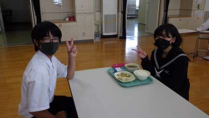 明日の体育祭に正々堂々と戦うことを誓って、赤白の団長と「ハイッ、ポーズ!」