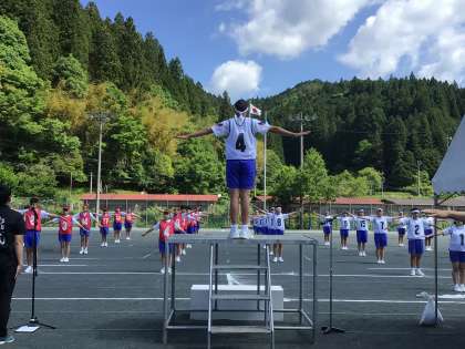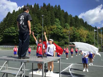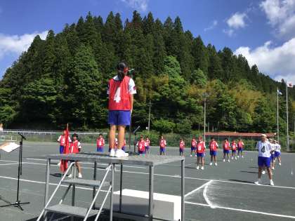 生徒会長の言葉、選手宣誓、準備体操の様子です。