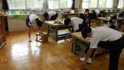 本時の学習課題は「木材の加工技術を学ぼう」でした。両刃のこぎりの使い方を学びました。